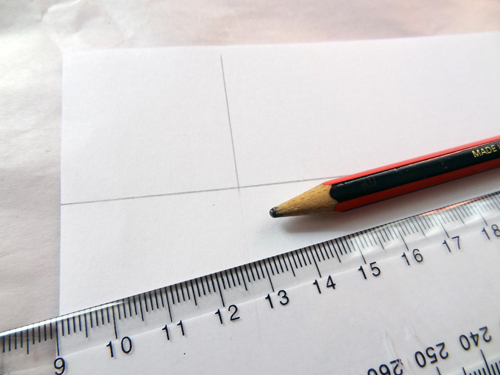 Now we’re going to draw up guidelines on paper so that we can practice giving each of the letters the right proportions. Start by ruling a horizontal line all the way across the page near the top, and then add a vertical line near the left.