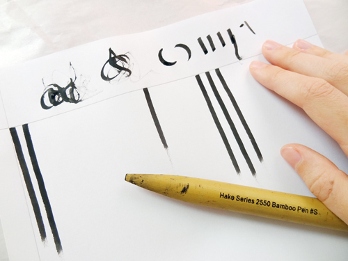 You’ll also find that the pen runs out of ink and you have to keep dipping. It doesn’t take too long to get used to the idea of dipping your pen whenever it runs out of ink. As an exercise, try making the longest line you can in one stroke. This shows you how much ink the pen can hold, which is not a huge amount.