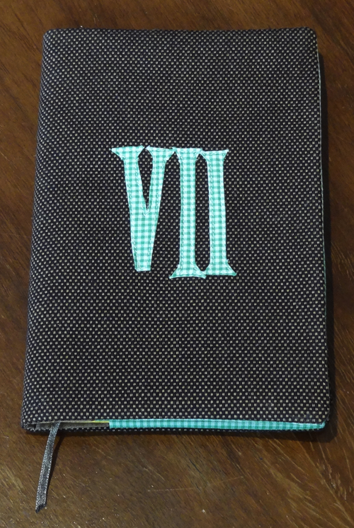 As a side note, I was actually so happy to have the good fortune of owning a vintage Septimus that I sewed a custom book jacket to protect its colourful cover, adorned with the Roman number 7 to denote Septimus.
