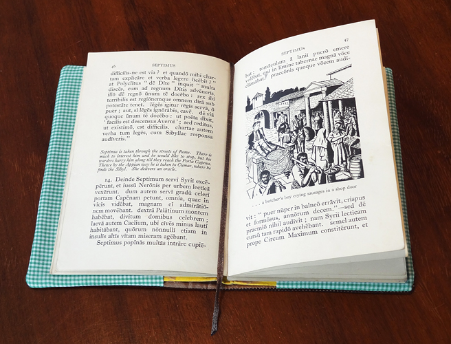 Nevertheless, most of these shortcomings can be remedied simply by recommending the book for a slightly older audience than it was originally intended. If you have studied Latin for perhaps a year or more, and you want to practice your Latin, improve your reading speed, or simply relax and enjoy a good Latin novella, I would highly recommend you hunt down one of the few remaining copies of Septimus and give the book some love. The vocab might surprise you for a moment, but it doesn’t take long to look up the words and they do actually add to the appeal of the story. You might encounter a dated stereotype or two, but these do not harm the narrative and even the “cruel wife who hen-pecks her husband” character turned out to be deeper and more likeable than she appeared at first.