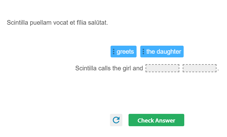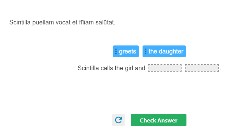 There are a variety of solutions to this particular problem – for example, a teacher can train students on three word sentences with totally random word order (SOV, OSV, SVO, OVS), showing that they must rely on word endings alone for meaning. I don’t prefer this approach personally, because it gives the impression that Latin word order is random, as if it were concocted to trip up students like a puzzle.