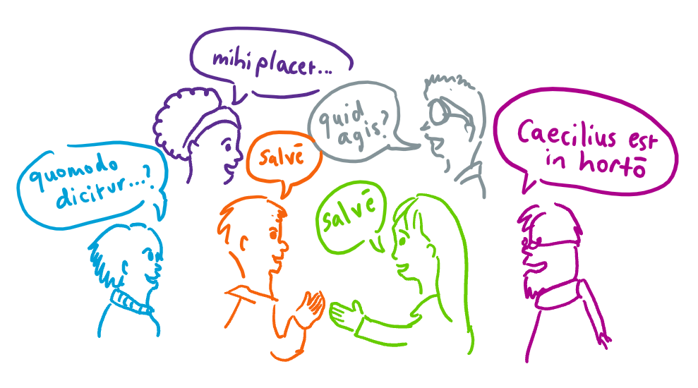 Live conversations now take place regularly throughout the week among Latin-speaking communities whose members are geographically separated. There are several Discord servers through which speakers meet and host regular weekly voice chats.[2]  Several Latin speaking groups also meet to talk over Zoom on regularly scheduled weekly times, now running four times per week.