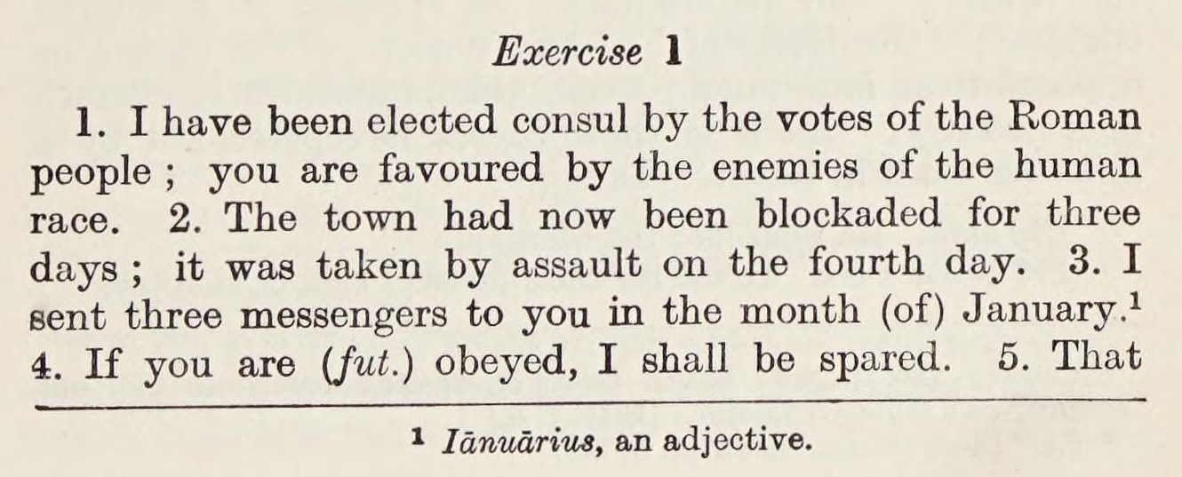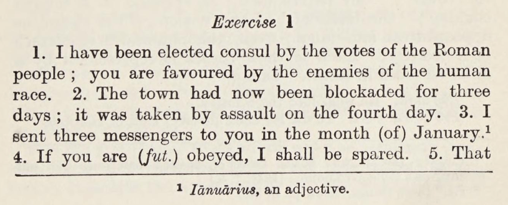 And here are the first few sentences in North & Hillard’s Prose composition (these are preliminary exercises, easier than the first intended real exercises):
